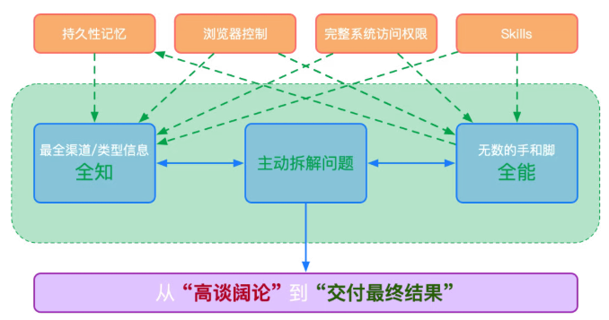 过去两年我们见到的大多数 AI 产品,他们多数还是“对话器”:你问,它答;你再追问,它再答;它可能给你一份很漂亮的步骤清单,但中间那段执行链路,仍然要你自己去点、去填、去跑、去验证。