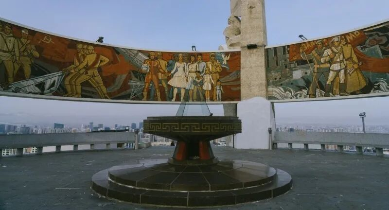 这座纪念碑建于苏联时期,环形墙体上的彩色马赛克瓷砖记录着苏蒙关系的历史片段,包括1921年苏联支持蒙古独立、1939年苏蒙军队在边境击败日本关东军,也记录着前苏联太空飞行等重大时刻。它最初是为纪念二战中牺牲的苏蒙战士而建,是那个时代的鲜明印记。然而当我俯瞰脚下的烟尘、拥堵与棚户区,突然意识到历史并没有离开,它只是换了一种方式继续留在城市结构里。