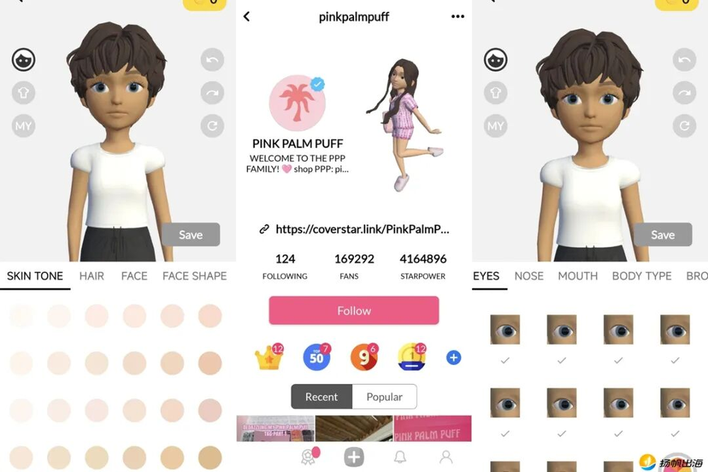 同时,围绕年轻用户的个性化需求,Coverstar还支持用户创建自己的虚拟形象,如肤色、发色、脸型等,用户都可以自由选择站内提供的选项,可选的组合很多,每个人创建出的角色都可以是独一无二的。而后,该虚拟形象也会展示在用户的主页,成为用户的对外形象以及个人名片。