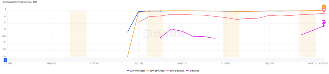 近日,罗斯基关注到,一款名为《Last Asylum:Plague》的游戏在海外市场正式上线。截至3月2日下午,游戏在App Store美国游戏免费榜中排名第23名,同时在畅销榜中也攀升至106名,势头强劲。