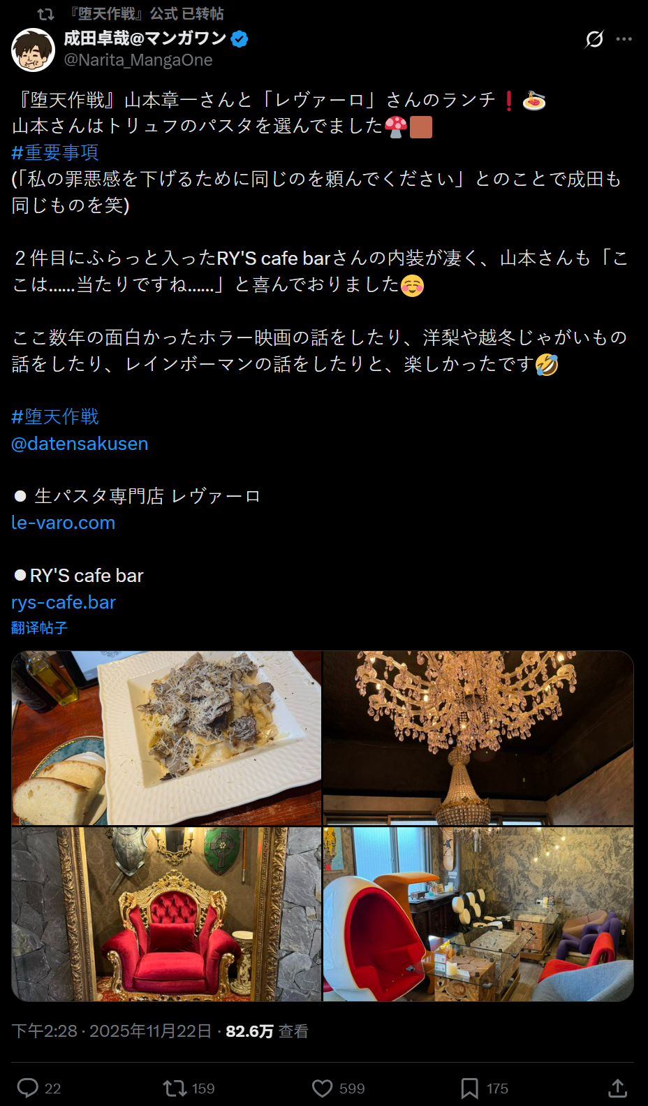 实际就在去年底的时候,成田卓哉还主动在推特上晒了他和山本章一共进午餐的照片,即便知晓对方恶行,依旧私交甚密。