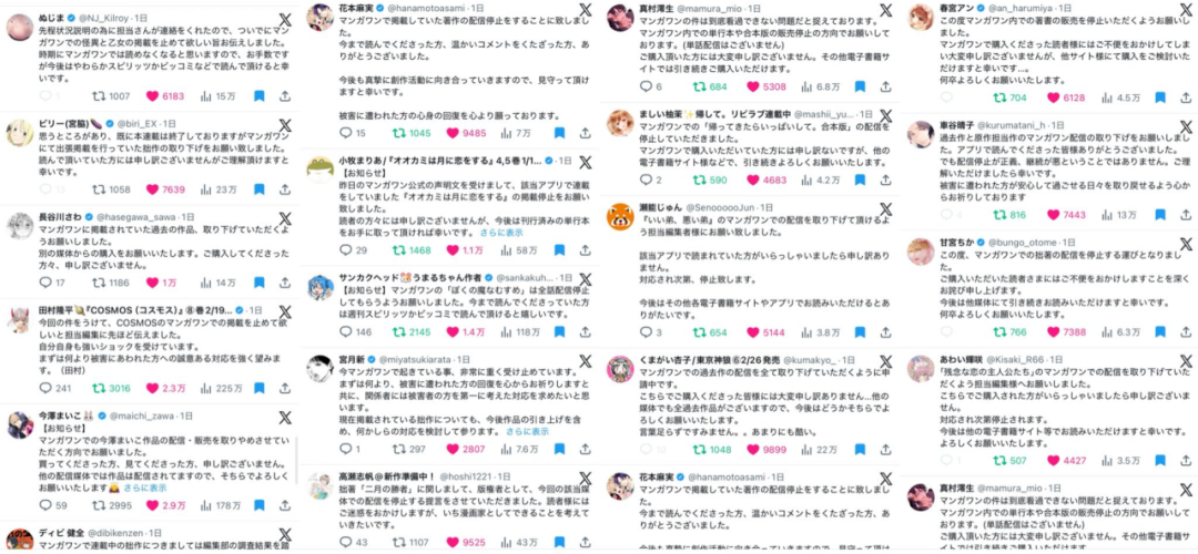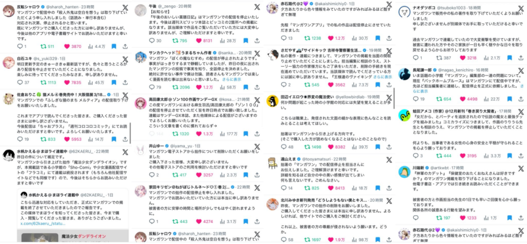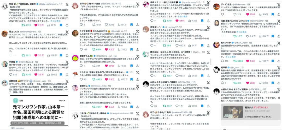然而就在这几天,大批漫画家宣布自己的作品将在Manga One上停更,甚至号召读者抵制该平台。