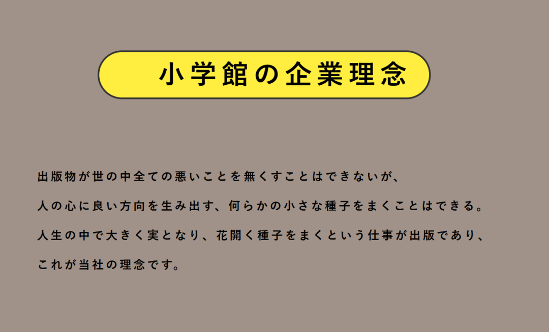 在小学馆的官网首页上,写着:“出版物无法消除世界上所有的负面事物,但它们可以种下一些小小的种子,在人们心中创造一个积极的方向。出版是播种,结出丰硕果实、绽放生命的种子——这正是我们的理念”