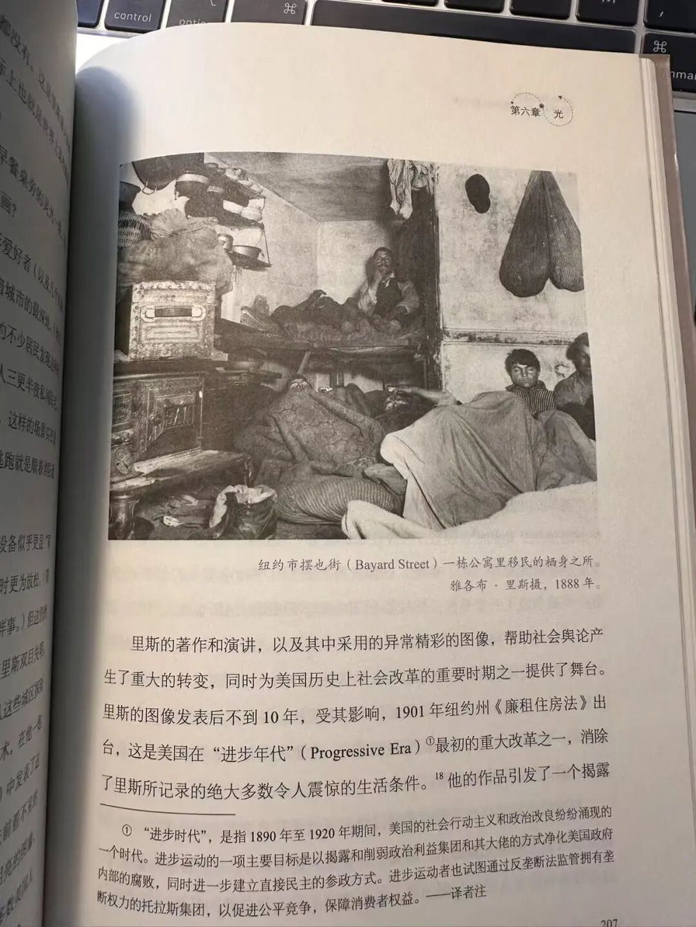 时间和光的创新体现了人类对自然节律的权力交接。大航海时代,为了让船只不迷失方向,制造了精准的计时器,最终演化成了主宰现代社会的标准时间。从鲸油灯到爱迪生的电灯泡,光不仅颠覆了人类延续千年的分段式睡眠方式,让夜晚变成了生产力的延伸,还通过摄影闪光灯揭开了美国社会角落黑暗处的苦难。光改变了我们的生物钟,也通过影像推动了社会变革。