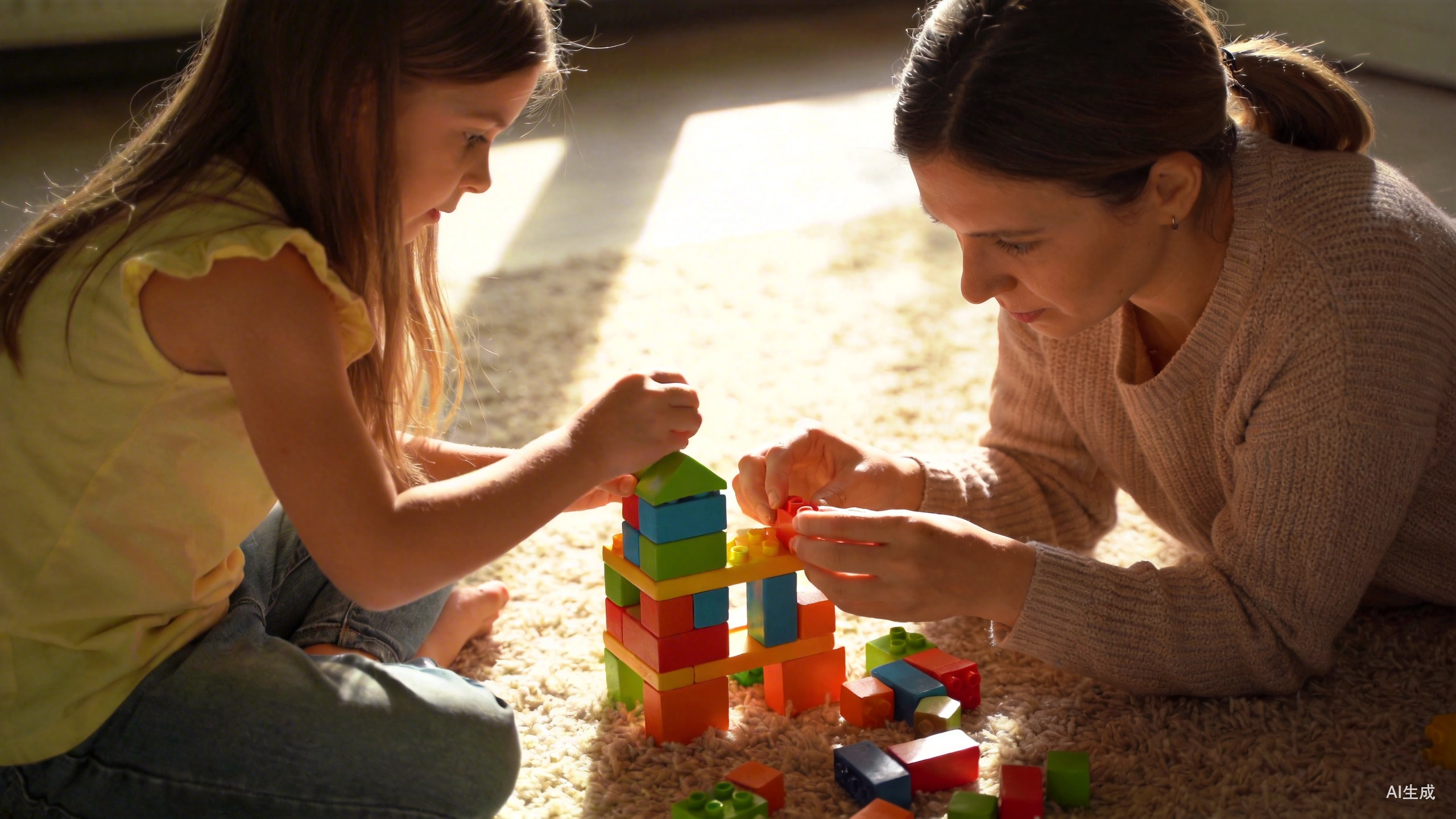 第二天早上,我请了假,在家陪她。我们坐在地毯上搭积木,她搭一座城堡,我搭一座桥。阳光从窗户照进来,落在她的头发上,金灿灿的。
