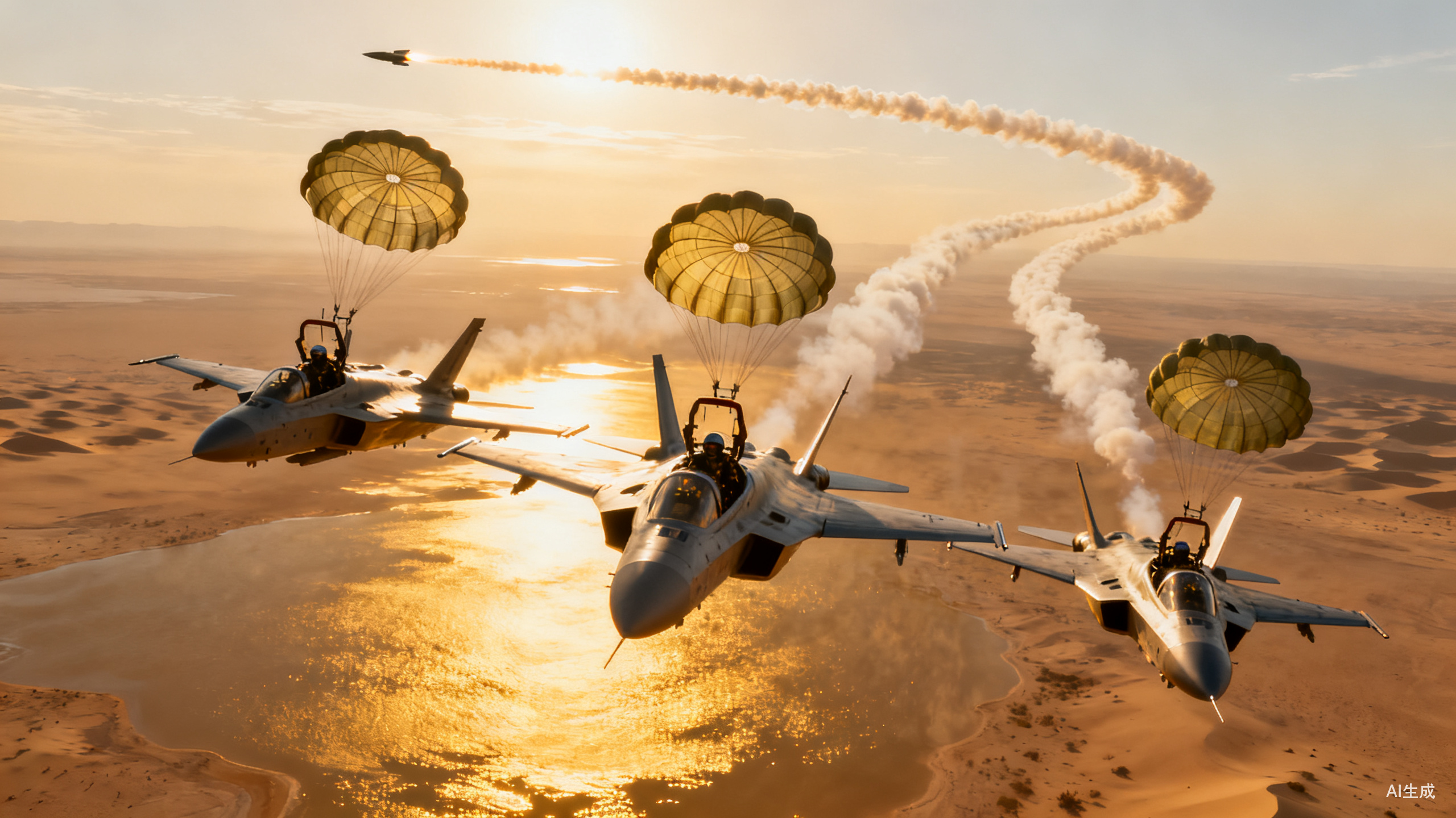 社交媒体上流传的视频显示,一架疑似美国F-15战机在科威特上空坠毁,飞行员跳伞逃生。