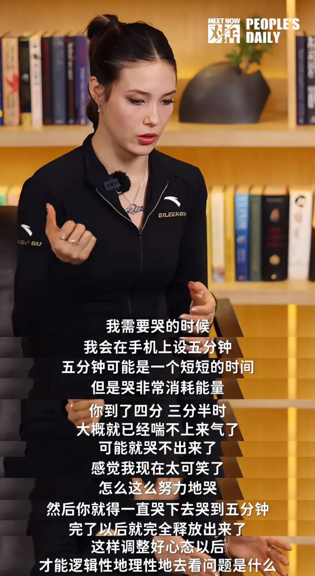 不过,她从未觉得哭是一件丢脸的事。相反,她完全允许这些脆弱的时刻存在,就像她在央视专访中说的那样,「哭是最健康的,就是让自己内心释放出来的方法」。