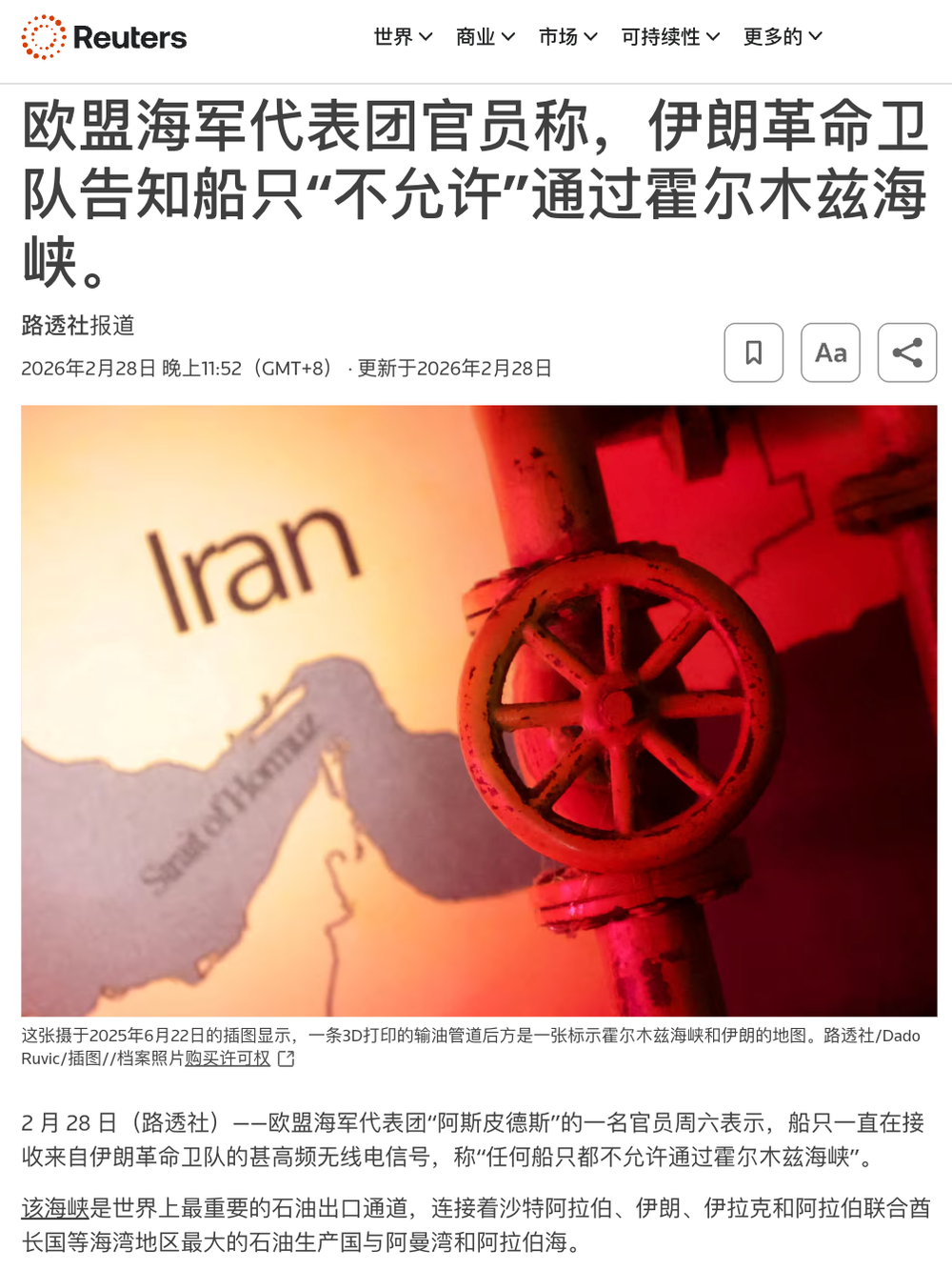 但无论最终走向如何,都揭示了一个冷峻的现实:石油市场的稳定,从来不只取决于地下埋了多少油,更取决于那条33公里宽的海峡是否通畅。