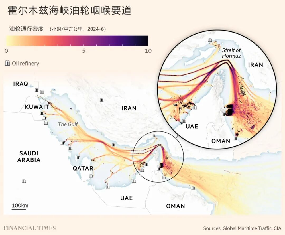 由于安全风险急升,保费也跟着飙升,大量船东观望绕行,霍尔木兹的实际通行能力已经大降。