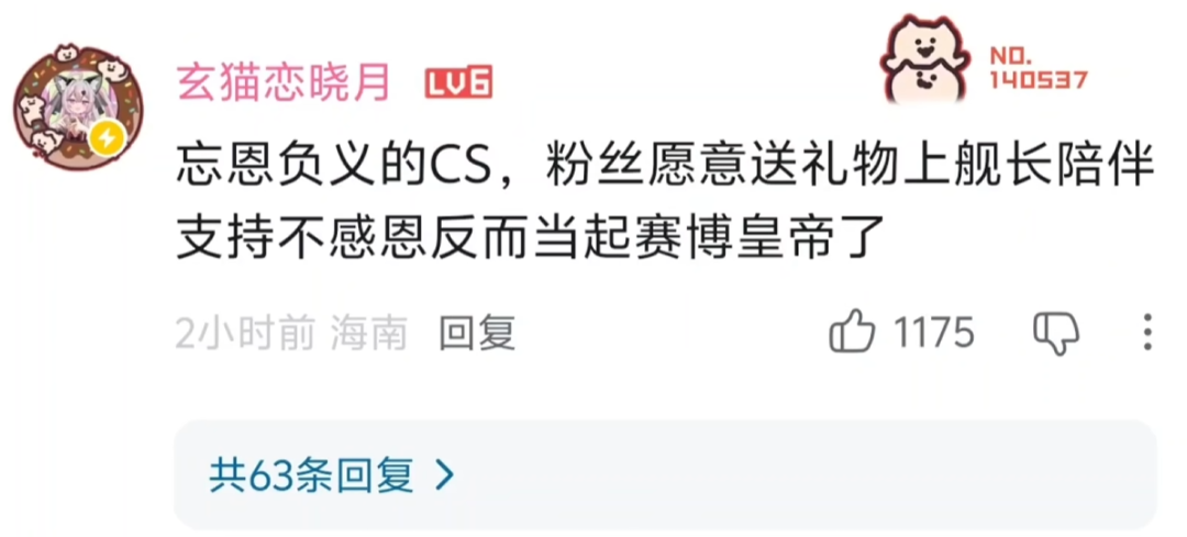从当天的录像来看,清雨在威胁毁号之后,其实看到了五月的解释弹幕,理应也就看到了五月的粉丝牌,然而面对这位仅仅忘记续费一天的粉丝,清雨直接一顿“你哪位”“退游吧”的冷嘲热讽。