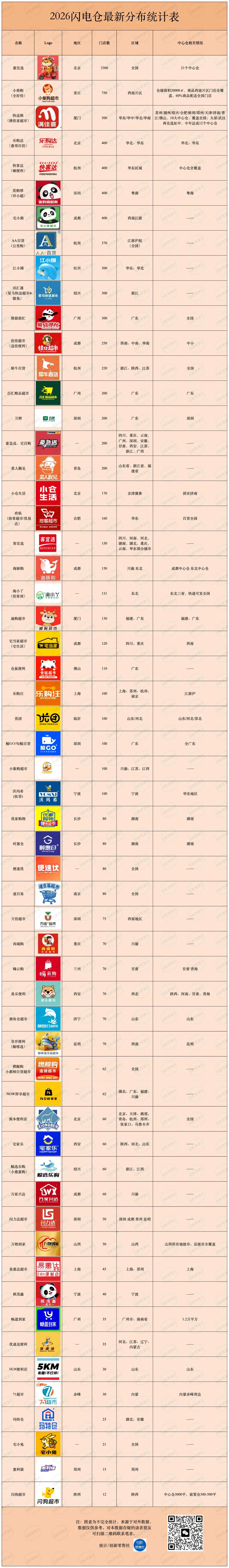 本文来自微信公众号: 新经销 ,作者:汪海,原文标题:《60个闪电仓品牌,11806家门店,2026最新盘点!》