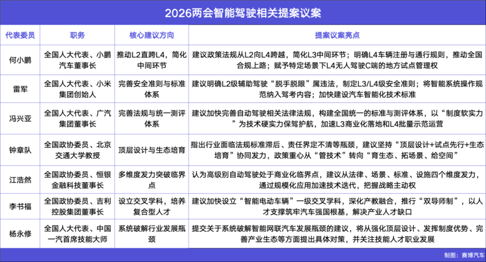 综合来看,2026年两会代表委员们的智能驾驶提案,主要关注法规突破、标准统一、安全保障和人才支撑四大维度。
