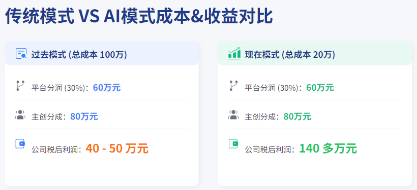 到时候,平台会微微一笑很倾城,既然AI这么便宜,那我凭什么给你高分成?你AI不是成本低吗?那我就降低你的分账比例,降到某一个水平。