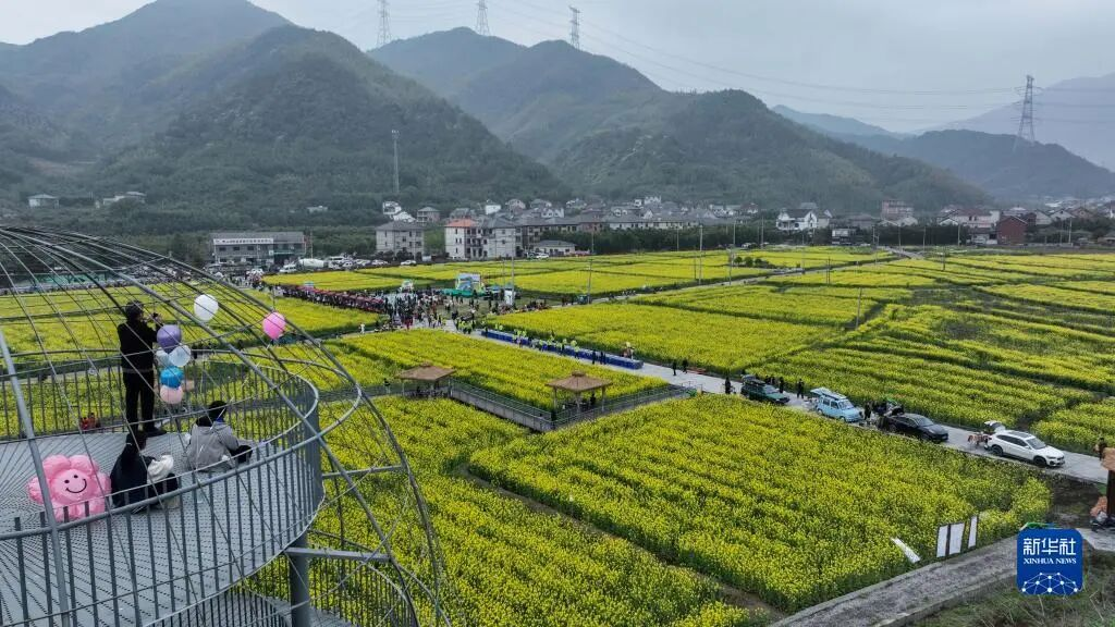 在浙江杭州临安区青山湖街道郎家村“共富稻田”,游客观赏春日美景。资料图:新华社