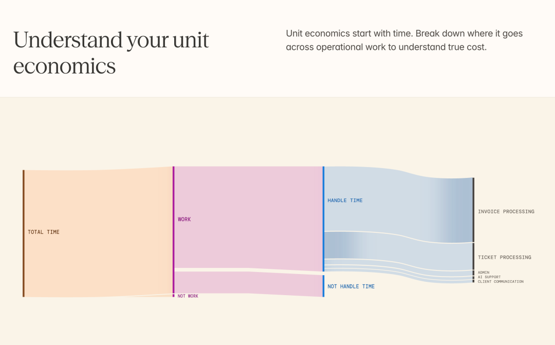 Reflow的核心价值在于将运营工作转化为结构化数据。这听起来很技术化,但实际含义很简单:它让你能够看到工作是如何在人员、系统和流程之间流动的。不是通过时间追踪,不是通过员工自我报告,也不需要复杂的系统集成。Reflow采用了一种系统级的方法,观察完整的工作流程,揭示任务如何流转、瓶颈在哪里形成、时间真正花在了哪里。