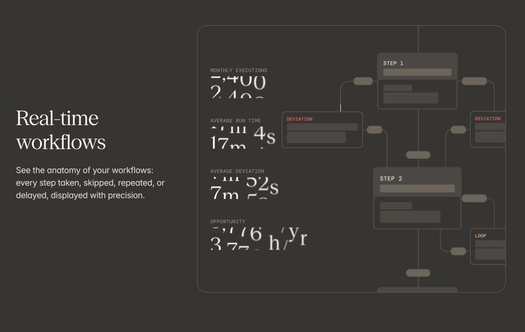 具体来说,Reflow帮助企业做三件事。第一件是识别瓶颈、低效环节和标准操作规程的偏差。当你能看到完整的工作流程时,那些拖慢进度的环节会立即显现出来。可能是某个审批步骤经常延误,可能是某个数据录入环节容易出错,也可能是团队成员在执行任务时绕过了某些必要步骤。这些问题在传统的产出指标中是看不到的,但它们正在悄悄消耗时间和资源。