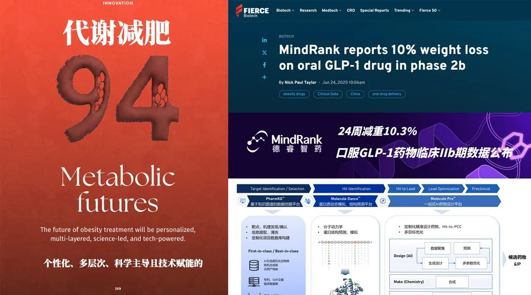 在这个新时代,前沿制药与医药科技创新有望更精准地满足每位患者的个性化需求,同时减少副作用。中国AI驱动的药物研发初创公司德瑞智药(MindRank)利用AI研发出更易服用的口服GLP-1药物;临床前生物科技公司MitoRx Therapeutics研发的新型分子Myo4,有望在实现减肥效果的同时,不减少肌肉量或骨密度。