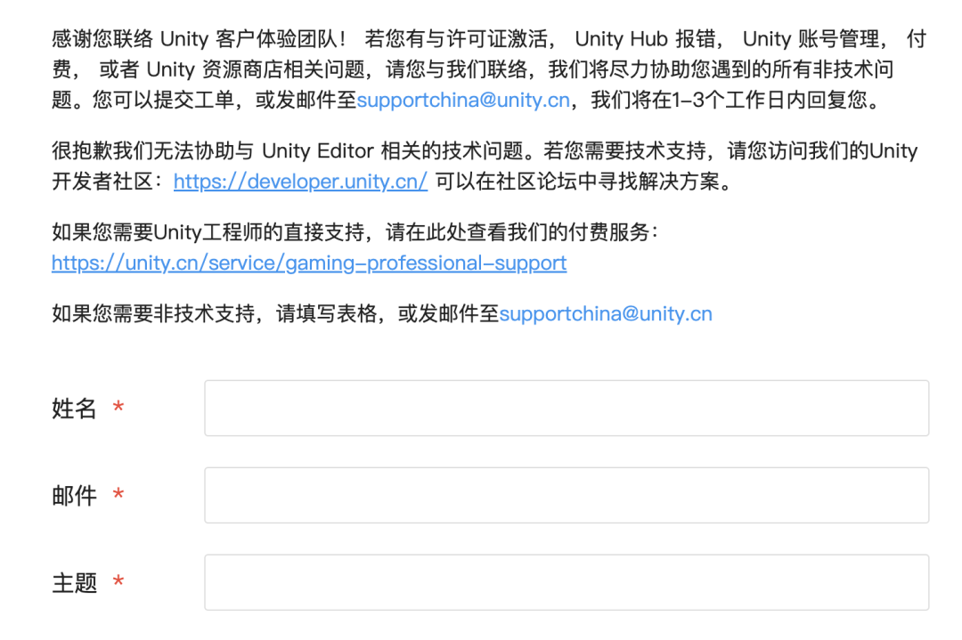 但这背后有复杂的跨区域协同原因。大家可能会注意到一个细节:今天紧急发布应对公告、想尽办法提出退款方案来解决问题的是Unity中国;但我们在稍早的公告里给开发者留的支持渠道,还只能是Global的海外工单链接。