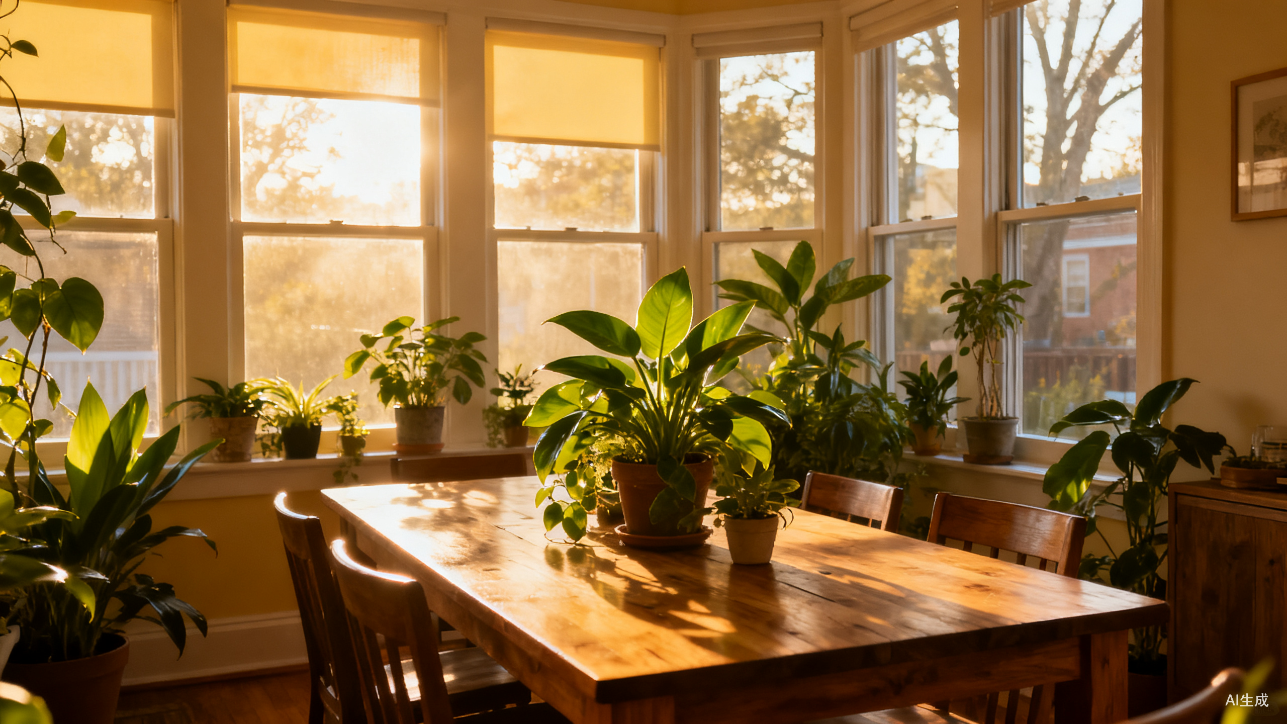 早餐前,金黄的阳光就已经热烈地斜照进公寓,把不大的饭厅晒得亮亮的暖暖的,我们那张小小的黄色木制餐桌在这光中,如同一块顺亮的琥珀,连每一道木纹都闪着光。这是绝好的早餐伴侣啊!想想,仅仅半个月前,每天清晨6点过,屋子里还是冷冷黑黑的呢。