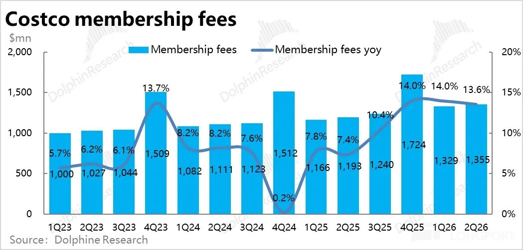 此外,本季度内Costco净新增了4家门店,开店节奏略有放缓(应当有年末假期影响),但下半财年会提速,全年开店计划还是在28家。