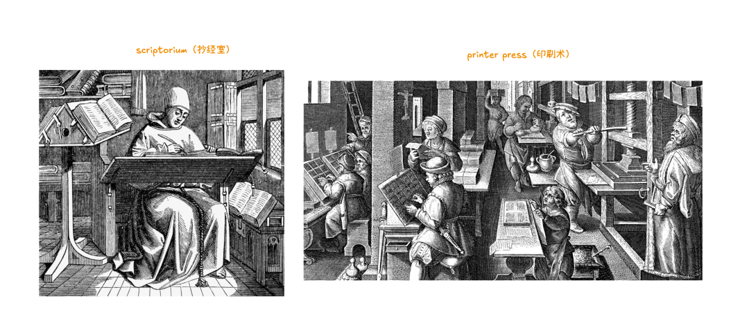 新职业的诞生:印刷术催生了一整个新的产业链——排版工、校对员、装订工、插画师、出版商、书商。这些职业在古登堡之前根本不存在。