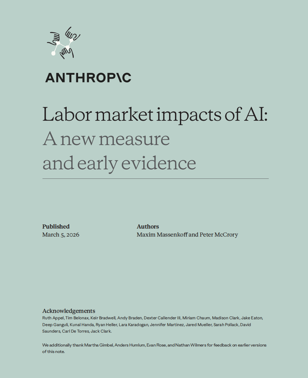 2026年3月5日,claude.ai的母公司Anthropic发表了一份名为《Labor market impacts of AI》的研究报告。它做了一件很朴素也很现实的事:用Claude平台上数百万次真实对话的数据,去测量在此时此刻、AI正在对哪些职业动手。