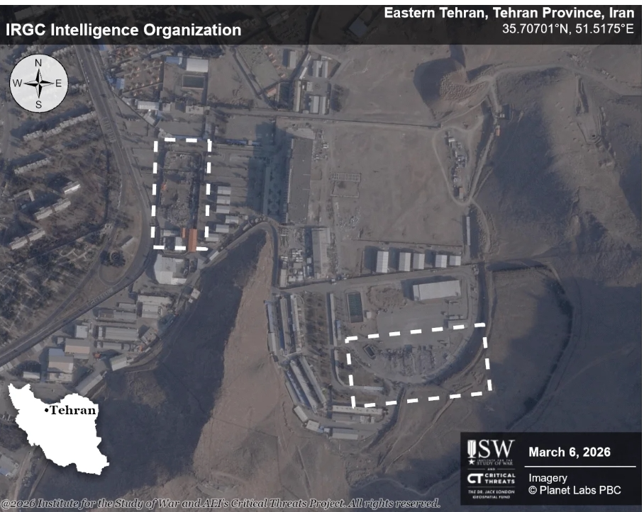 (德黑兰一处IRGC情报机构遭到夷平。来源:Institute for the Study of War)