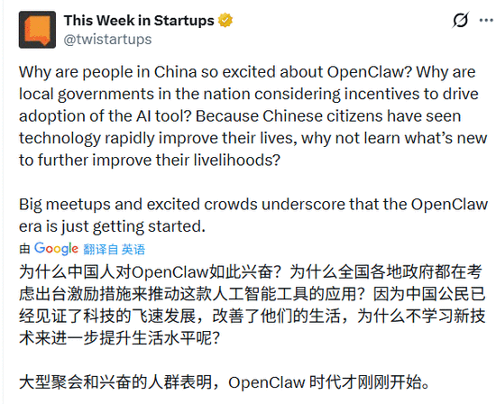 有网友评论道,中国民众对OpenClaw迸发出的惊人热情,正是源于亲眼见证了技术究竟是如何重塑现实生活的。排队代装和场场爆满的线下聚会足以证明,OpenClaw掀起的这波热潮才刚刚开始。