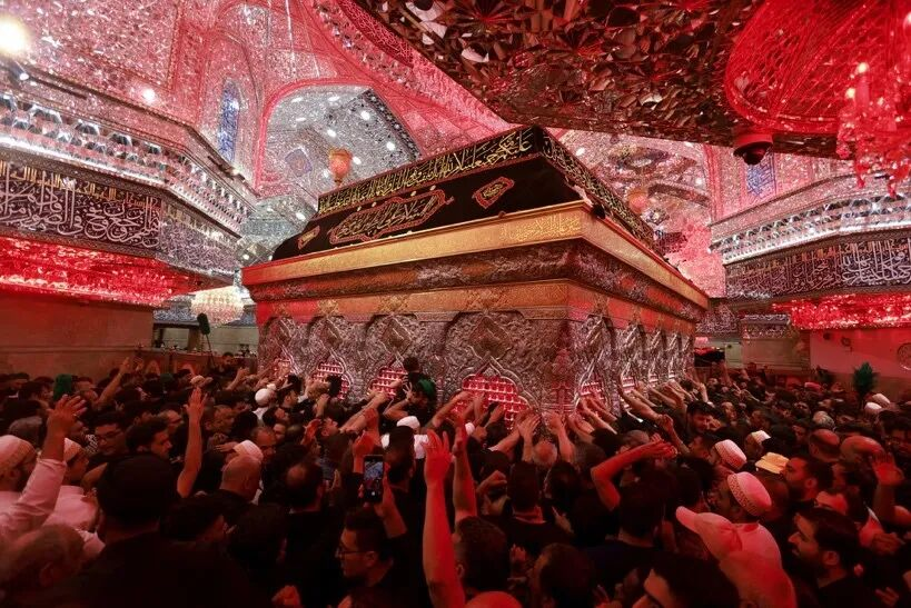 阿舒拉节期间,什叶派穆斯林朝圣者前往神殿触摸伊玛目侯赛因的坟墓(图源:路透社)