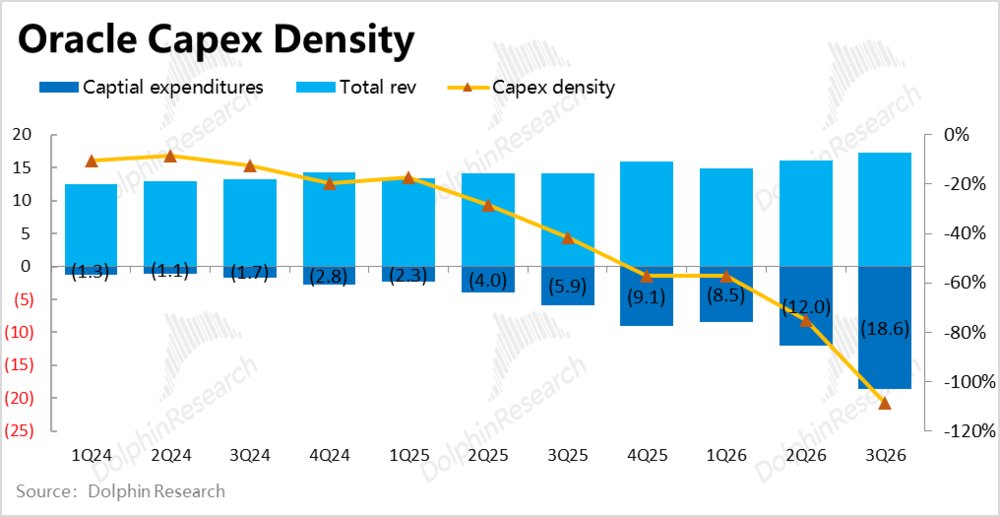 并且本季的Capex总额也首次高过了公司本季的总营收额,虽然另一新云CoreWeave的情况类似。但毕竟Oralce是个有另一半收入来自传统业务的老龙头公司,还是非常罕见的现象。