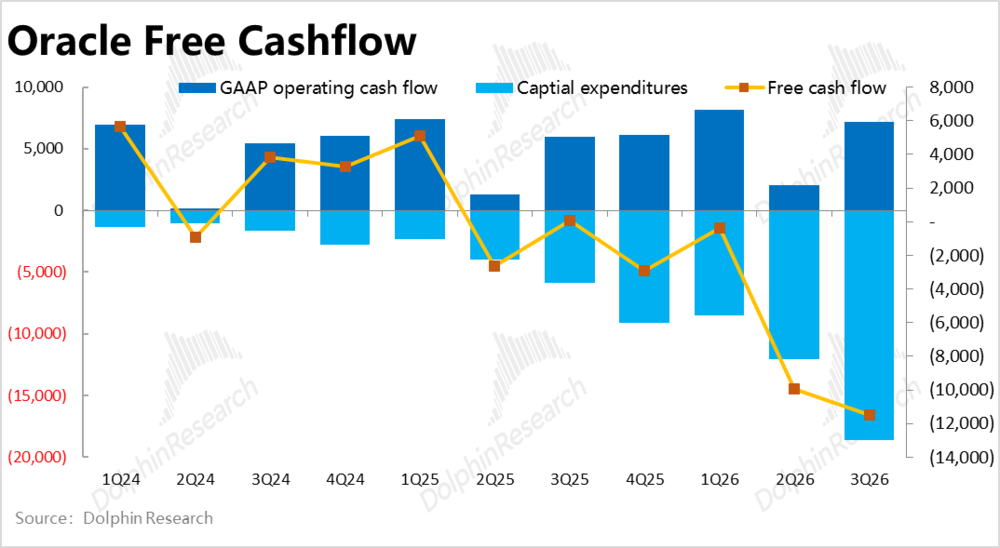 本季公司的Capex首次超过总营收,自由现金流已连续两个季度单季流出百亿上下,如此高额现金流出下,势必要对外进行大量融资。