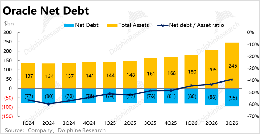 为了支撑高额且快速拉升的资本支出,截至本季公司官宣已完成了450~500亿融资计划中的约300亿,其中新增发债约250亿、发行优先股约50亿。净有息负债从25财年底的约810亿,攀升到了当前的950亿,净负债/资产比例为39%。