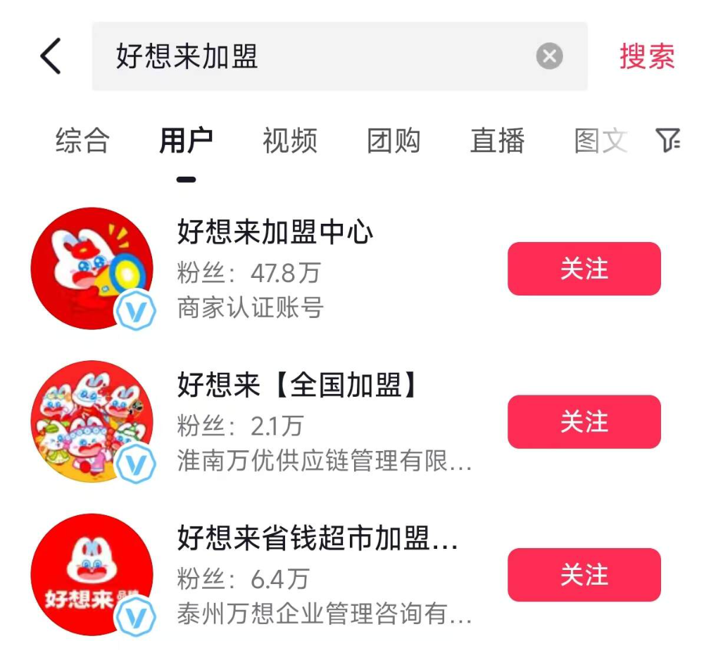 再比如运营社曾分享过的案例量贩零食连锁品牌好想来,直接将抖音当作加盟线索获客的核心阵地,布局了几十个招商蓝v账号,每天6小时直播分享加盟干货,再搭配线索留资工具做转化。数据显示,短短三年时间,好想来就在全国开出了1.5万家门店,成为零食领域的超级黑马。其中很多加盟商最初对该品牌产生加盟意愿很可能就是被他们在抖音布局的内容所影响,好想来主攻招商功能的账号就吸引了超50万目标用户关注。