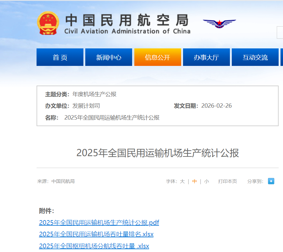 图源:中国民航局《2025年全国民用运输机场吞吐量排名》