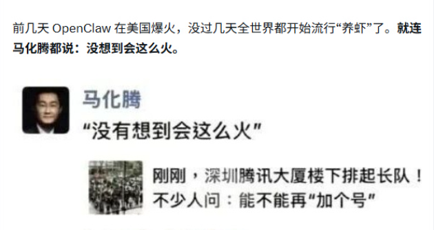 马化腾那句没想到龙虾这么火一定是发自肺腑的,