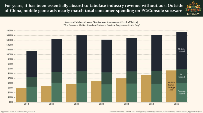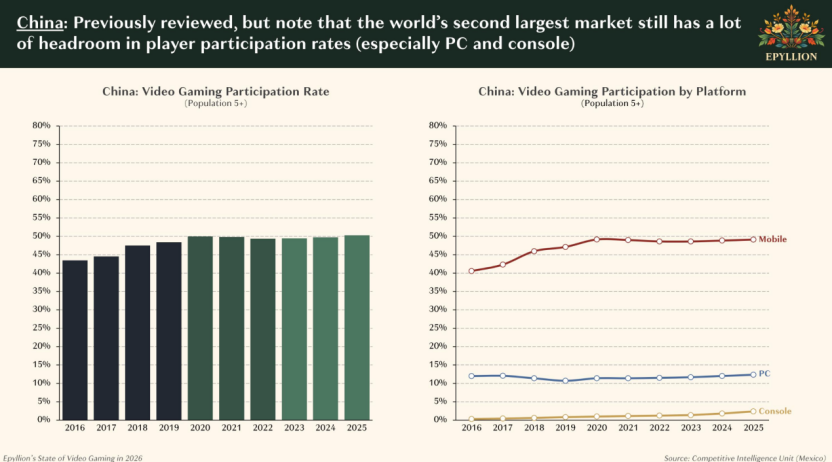 本文来自微信公众号: 北窗漫读 ,作者:晓渡Rosie,原文标题:《结构大于整体——从Epyllion 2026电子游戏报告中,读懂中国游戏厂商的优势密码》