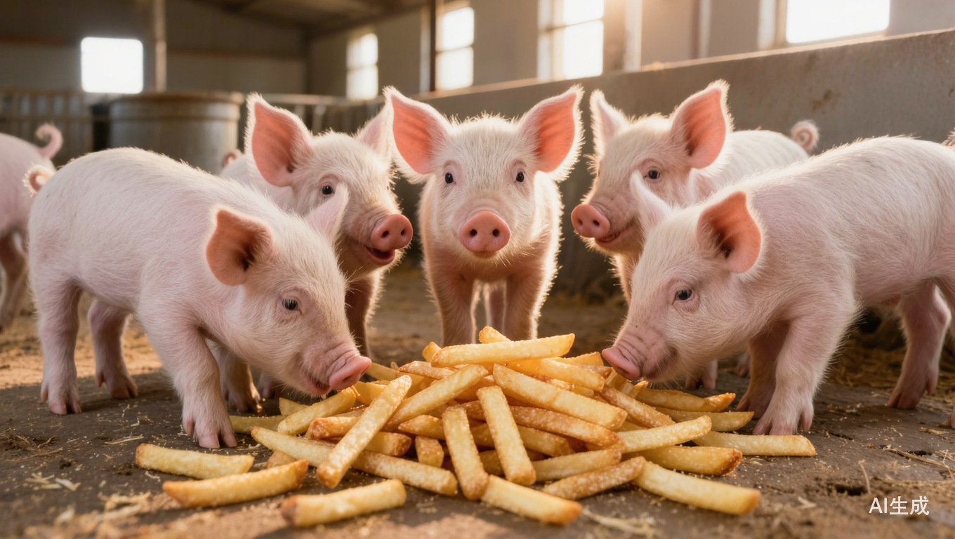 薯条当猪饲料,成吨的薯条被被直接送到养猪场,一群小猪蜂拥而上,也是许多人的晚饭梦想画面。