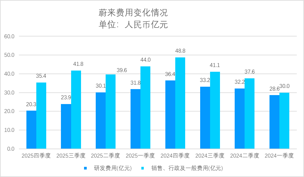 体现在更宏观的公司报表上,则是从2025年2季度开始就能确认到蔚来在“狂砍”费用。