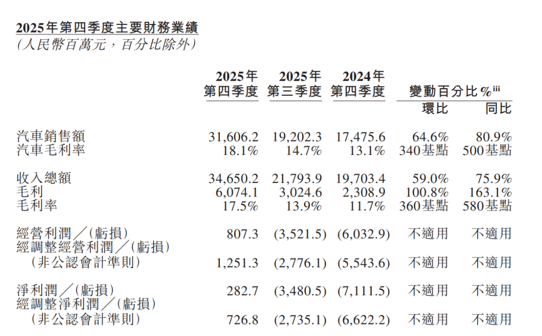 3月10日蔚来公布了2025年第四季度及全年财务报告。报告显示,本季度蔚来共计交付12.5万辆车,同比增长超七成,经营利润(Non-GAAP)为12.5亿元,李斌终于兑现了“喊”一年的季度盈利承诺。