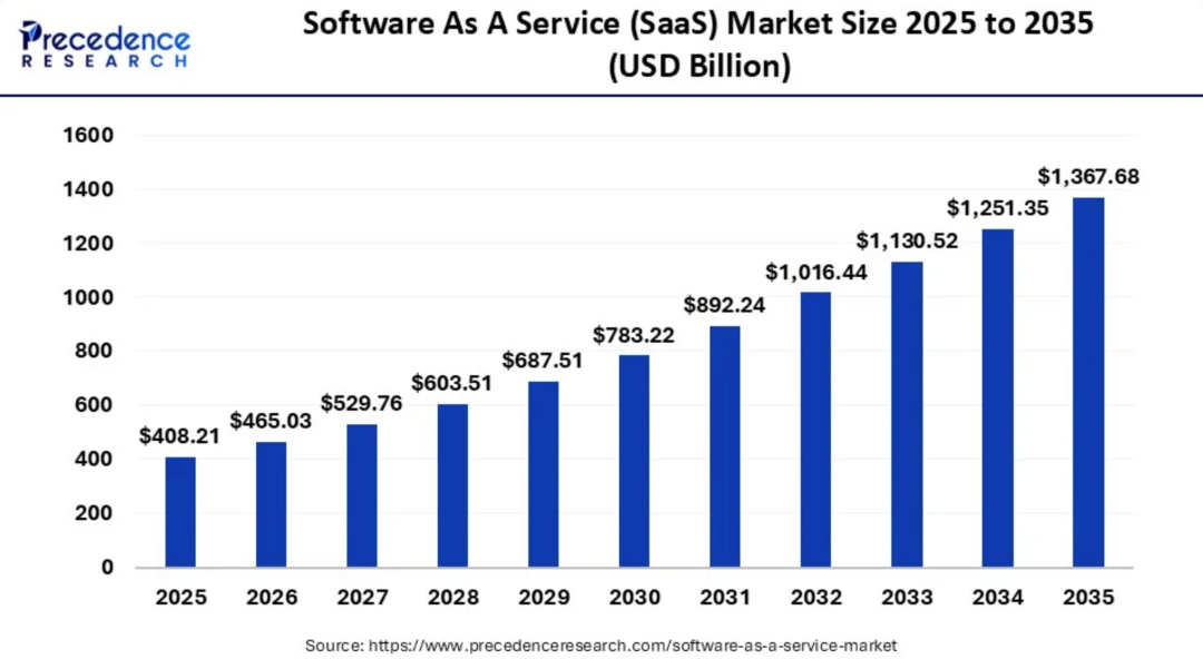 Gartner在2026年2月的预测数据显示,全球软件支出今年将增长14.7%,超过1.4万亿美元。Forrester预测全球SaaS市场从2025年的3180亿美元增长到2029年的5760亿美元。很明显,这不是一个正在死去的行业的数字。