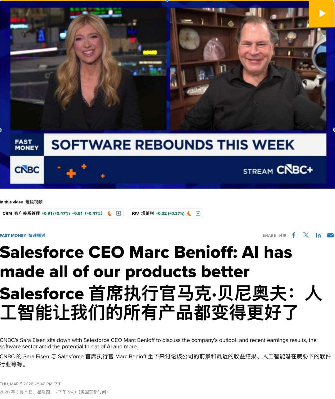 2024年,有一家金融科技初创公司Klarna的创始人兼CEO,在ChatGPT出来之后选择放弃使用Salesforce的旗舰CRM产品,转向自己开发的AI系统。一年后,他在X发文说,他不认为其他人会,或者应该效仿他的做法。「我不认为这是Salesforce的末日;或许恰恰相反。」