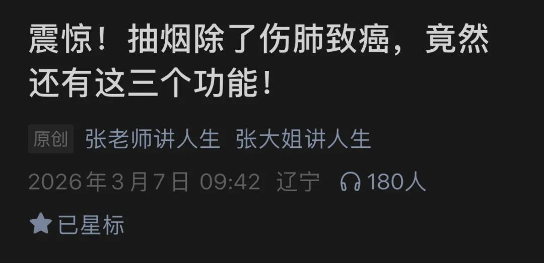 《震惊!抽烟除了伤肺致癌,竟然还有这三个功能!》