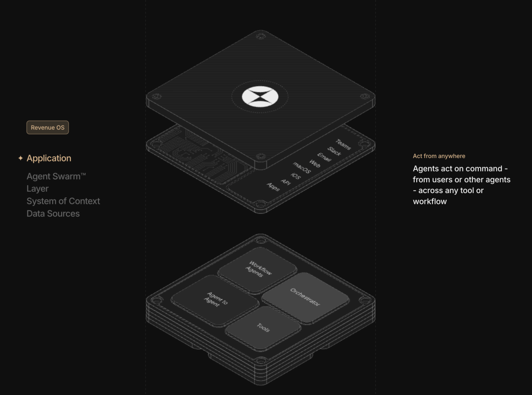 Rox AI的做法完全不同。他们的系统不需要手动数据输入,而是自动从邮件、日历邀请、通话录音和其他信号中提取信息,自动构建和维护每个交易的完整画面。销售人员不需要通过表格和下拉菜单与系统交互,而是使用自然语言。从理论上说,这不再是一个传统意义上的CRM,而是一个恰好追踪客户数据的AI销售助手。用GV投资人Dave Munichiello的话说:"Rox的独特AI agent系统提升了CRM体验。这些agent在幕后持续工作,监控客户活动,识别潜在风险和机会,甚至建议最佳行动方案。"