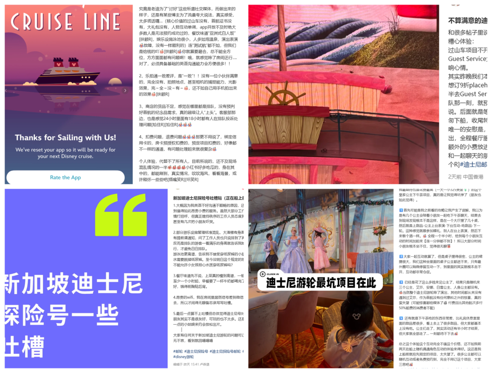 她特别提到,自己去过不少邮轮首航,皇家、MSC都赶上过,没有一次特别顺利的,而大部分首航客人对迪士尼服务其实也不算特别不满,工作人员一直在很努力地创造快乐情绪,只是差评在社交媒体上被放大了。