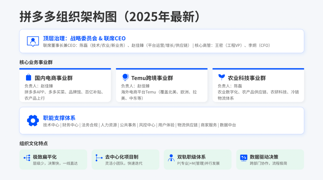 因此,对应的,拼多多的组织架构就极其扁平了——