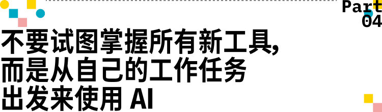 福布斯的评论文章认为,在AI工具层出不穷的当下,与其不断追逐新的模型和工具,不如先想清楚自己每天的工作中,哪些任务是最耗时、最重复、最消耗你精力的。明确了这些工作环节之后,再去思考AI如何能在其中发挥作用。这种以任务为导向的方式,会使你有意识地让AI的使用,集中在你认为最关键的任务上,而不是在各种零碎场景中频繁切换,这样既能减少工作碎片化,也能降低我们的认知负担。