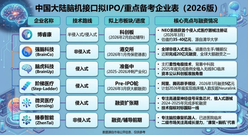 中国大陆脑机接口拟IPO/重点备考企业表(心智观察所汇总)