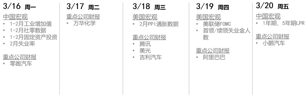 美股方面,CTA持续抛压令标普500逼近200日均线,市场对美伊冲突的定价仍指向“短期先恶化、后缓和”,叠加FOMC、英伟达GTC大会与四巫日,本周波动预计仍将维持高位。我们判断,本轮油价上行虽会阶段性压制风险偏好,但尚不足以将美国经济推入实质性滞胀;更值得关注的是,地缘冲突对资源、产能与供应链安全焦虑的强化,可能在中长期继续抬升相关资产估值中枢。本周英伟达GTC或成为检验AI商业化兑现与产业链景气延续的重要窗口。