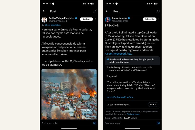 蒙特雷理工学院的研究显示,在周日军事行动后出现的200至500条可疑帖子中,35%至40%缺乏背景信息,至少25%具有误导性,近25%由AI生成或被篡改。布鲁金斯学会专家万达·费尔巴布-布朗认为,这些“令人印象深刻且复杂”的AI生成内容,可能正出自CJNG控制的聊天机器人,它们“无疑加剧了墨西哥的混乱与崩溃氛围”。
