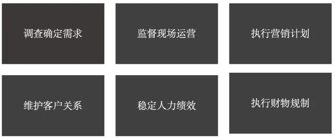 基于岗位功能赋予相应任务,主要有五项:一是店铺运营管理,为公司挣钱负责。具体运营指标有销售、毛利、库存、损耗等;二是团队管理人,文化上落实企业理念,凝聚人心、化解矛盾,展示个人修养;业务上轮岗排班、策划销售、平衡考核;三是现场监督检查;环境、陈列、安全、情感温度;四是客户服务,承担企业品牌口碑的前哨角色;五是安全合规,保证不出事。